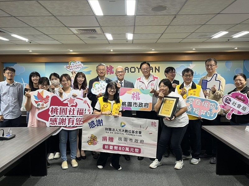 大大數位基金會、南桃園有線電視與桃園市政府社會局攜手,啟動「暖心公益力.大大挺兒少」捐贈計畫,挹注桃園市兒童及少年福利機構80萬元專款,提升兒少之生活照顧、教育輔導、心理支持及環境改善,讓安置兒少在穩定安全且充滿關懷的環境中成長茁壯。大大數位基金會5日於桃園市政府進行捐贈儀式,桃園市長張善政致贈感謝牌表彰善舉,大大數位基金會榮譽董事長李大維、南桃園有線電視董事長潘煦邦等也出席,與桃園市私立樂活育幼院、藍迪兒童之家等兒少福利機構代表相互交流。